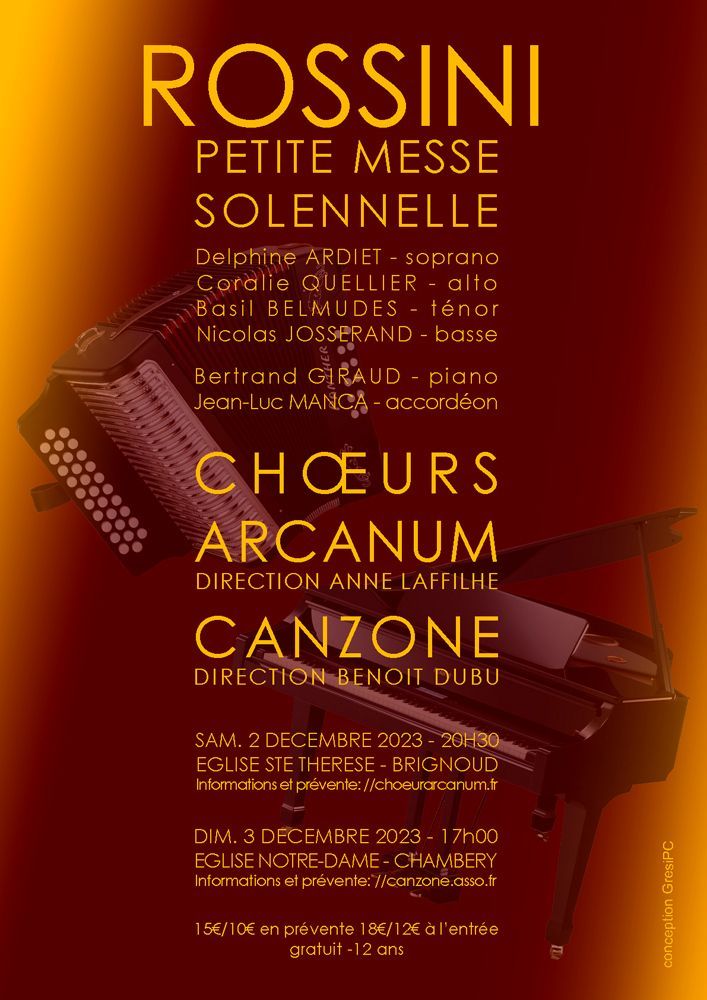 Pour leurs concerts de fin d’année, le chœur Arcanum et l’ensemble vocal Canzone (Chambéry) ont associé leurs forces pour proposer un programme 100 % Rossini.